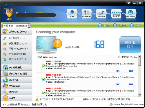 「あなたのパソコンは膨大な数のエラーが出ています。当社のツールを購入して解決して下さい」