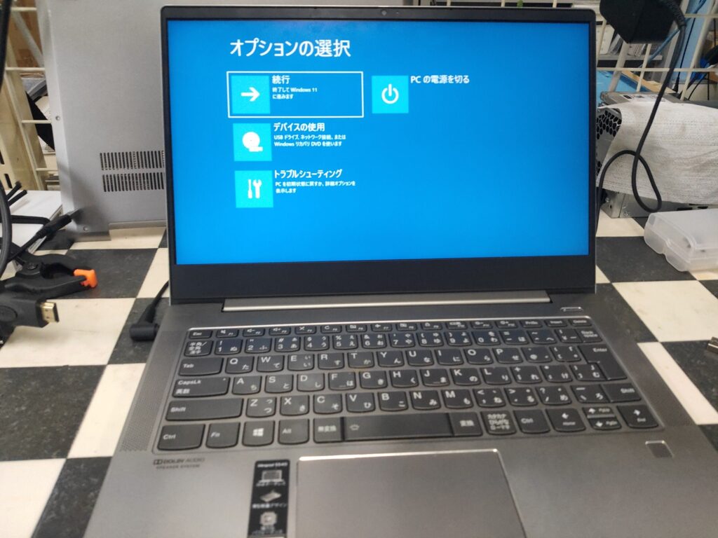 それならば起動中のクルクルの時点で電源を落とし、修復画面に持って行ってみましょう。