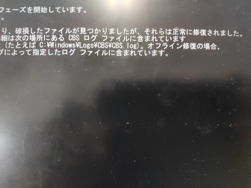 普段皆さんもシャットダウン中に「更新しています」と定期的に見ているであろう画面ですが、今回はなんとこのWindowsアップデートの更新後に「起動しなくなるではなく、起動はしているが画面が出ない」という不思議な状態です。初めて見ました。