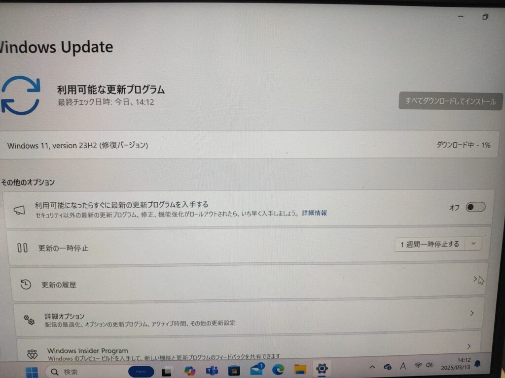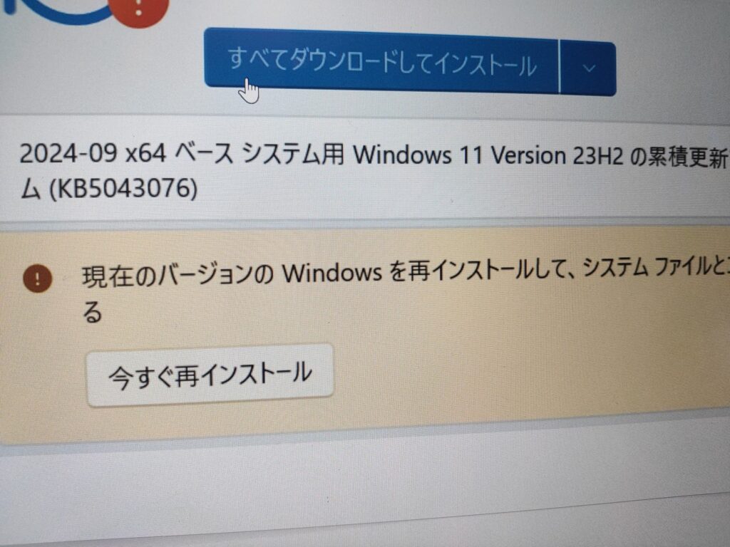 上書きインストールも無事に完了し、Windowsアップデートも再度チェックし問題なく動作するようになりました。