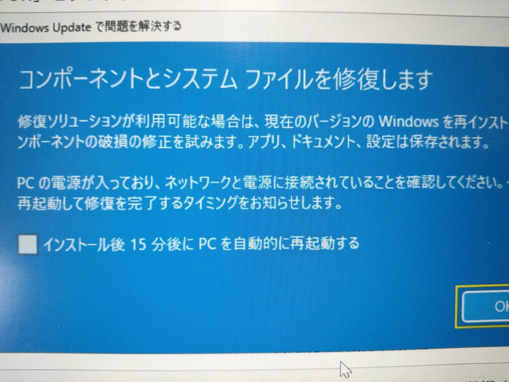 修復画面が出ました。一歩前進。